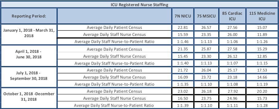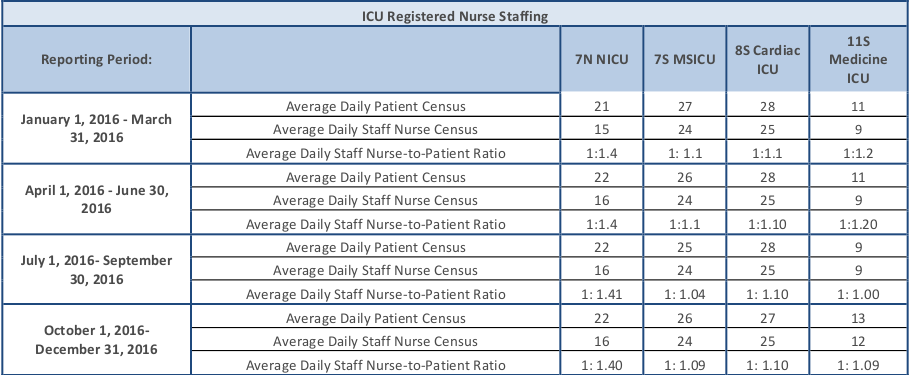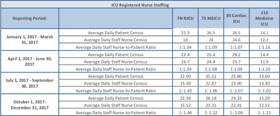 Please click below for the staffing ratios in each of our intensive care units (ICUs) at Boston Children’s Hospital.